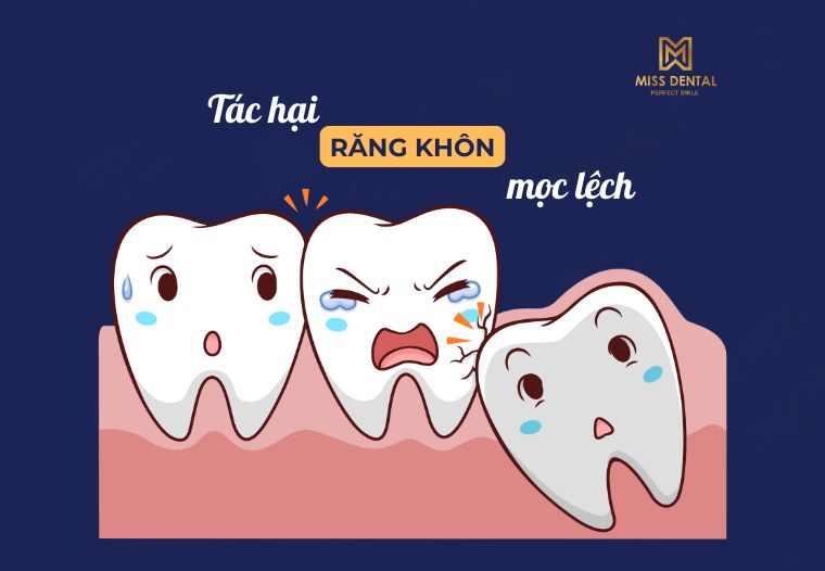 Dù mọc thẳng hay mọc lệch, răng khôn vẫn có những ảnh hưởng nhất định đến sức khỏe. Một số nguy cơ phổ biến bao gồm: