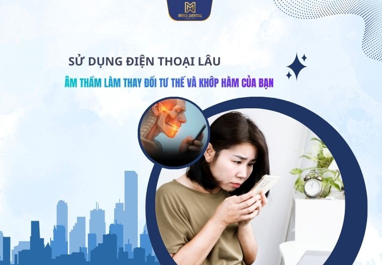 Tại Miss Dental, chúng tôi thường gặp nhiều trường hợp bệnh nhân đến khám vì đau khớp hàm, mỏi cơ nhai, lệch khớp cắn, và một nguyên nhân phổ biến lại xuất phát từ… thói quen sử dụng điện thoại quá lâu.