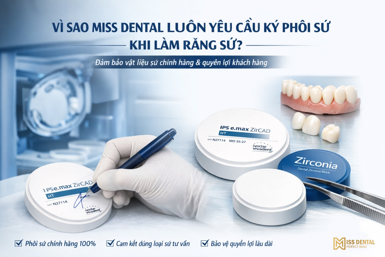 Chính vì vậy, ký phôi sứ luôn là bước không thể thiếu trong mọi ca răng sứ thẩm mỹ tại Nha khoa Miss Dental. Đây không chỉ là sự minh bạch, mà còn là cam kết trách nhiệm lâu dài đối với sức khỏe và nụ cười của khách hàng.